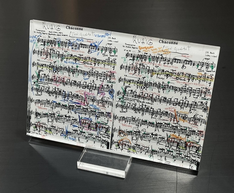오랜 연습과 도전의 흔적이 담긴 바흐 <샤콘느>악보를 아크릴 액자로 담아냈습니다. 박규희의 연습과 도전의 시간을 함께 느낄 수 있는 굿즈로 관객들에게 깊은 여운을 남겼습니다. 💌 |