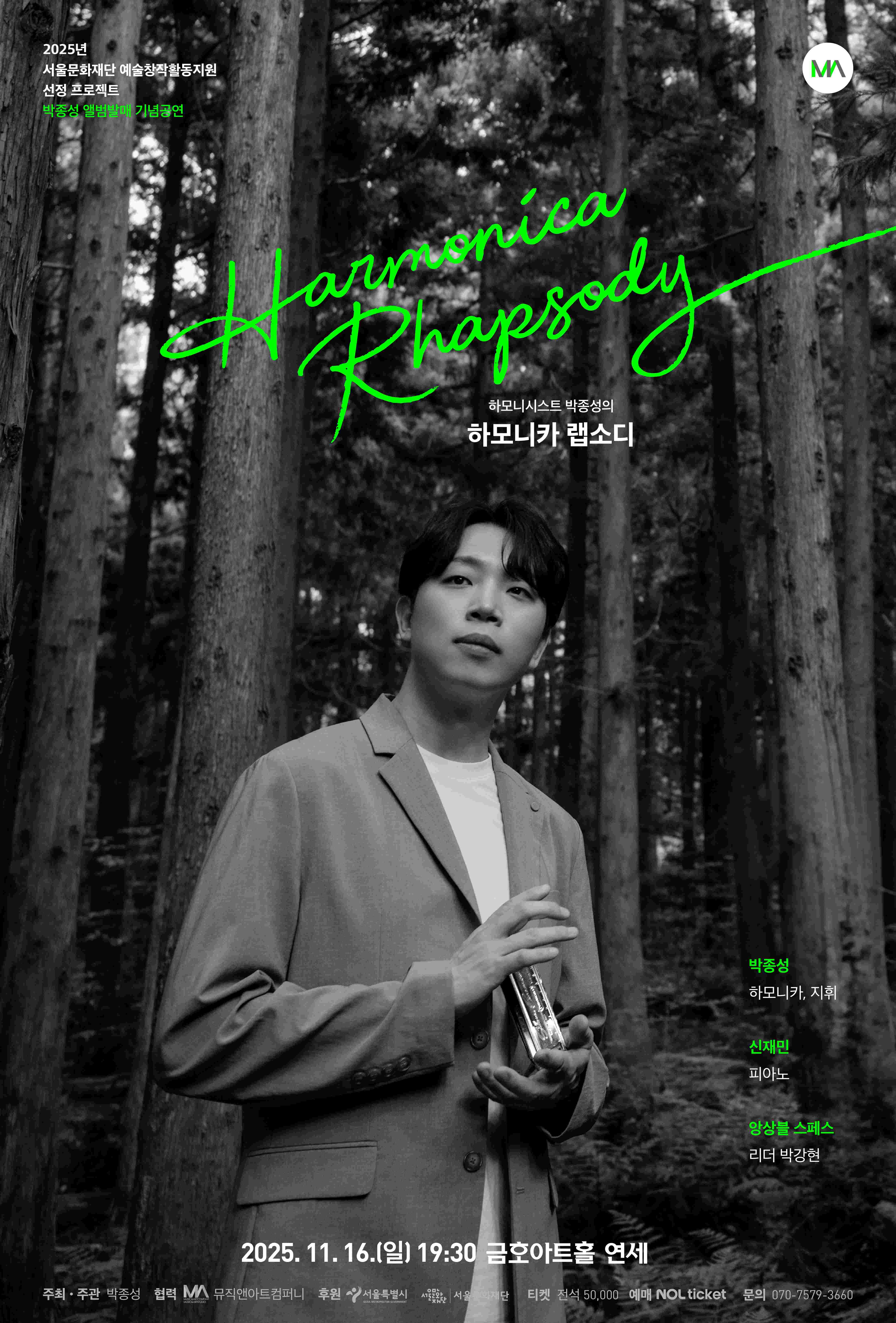 하모니카라는 악기가 가진 한계를 넘어, 클래식 무대의 중심으로 나아가는 이번 공연과 앨범은 박종성의 음악적 탐구와 철학이 집약된 결정체라 할 수 있습니다. '최초'를 넘어 '새로운 길'을 개척하는 하모니시스트 박종성의 <하모니카 랩소디>는 하모니카라는 작은 악기가 전하는 거대한 감동을 선사할 예정입니다. ✨ |